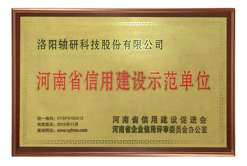 河南省信用建設(shè)示范單位榮譽稱號